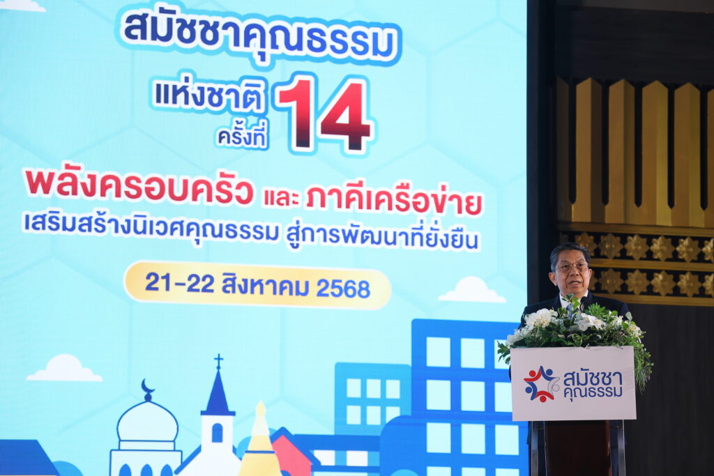 เมื่อวันศุกร์ที่ ๒๒ สิงหาคม ๒๕๖๘ ที่ผ่านมา ณ อาคารอิมแพคฟอรัม ๑ ฮอลล์ ๔ เมืองทองธานี แจ้งวัฒนะ จังหวัดนนทบุรี นายนุรักษ์ มาประณีต องคมนตรีเป็นประธานเปิดงาน สมัชชาคุณธรรมแห่งชาติ ครั้งที่ ๑๔ ภายใต้แนวคิด “พลังครอบครัวและภาคีเครือข่าย เสริมสร้างนิเวศคุณธรรม สู่การพัฒนาที่ยั่งยืน” พร้อมมอบรางวัลและป้ายแหล่งเรียนรู้องค์กรภาครัฐ องค์กรภาคธุรกิจคุณธรรมต้นแบบ นายนุรักษ์ มาประณีต องคมนตรี ได้กล่าวแสดงความยินดีกับทุกหน่วยงาน ที่ได้รับรางวัลและป้ายแหล่งเรียนรู้องค์กรภาครัฐ องค์กรภาคธุรกิจคุณธรรมต้นแบบ พร้อมทั้งกล่าวชื่นชมในความมุ่งมั่นตั้งใจ หน่วยงานองค์กรเจ้าภาพหลักการจัดงาน และองค์กรภาคีร่วมจัดงานสมัชชาคุณธรรมแห่งชาติ ครั้งที่ ๑๔ ที่ท่านได้ให้ความสำคัญกับการส่งเสริมคุณธรรมของชาติ ร่วมกับศูนย์คุณธรรม(องค์การมหาชน) ที่เป็นผู้รับผิดชอบหลักในการจัดงาน